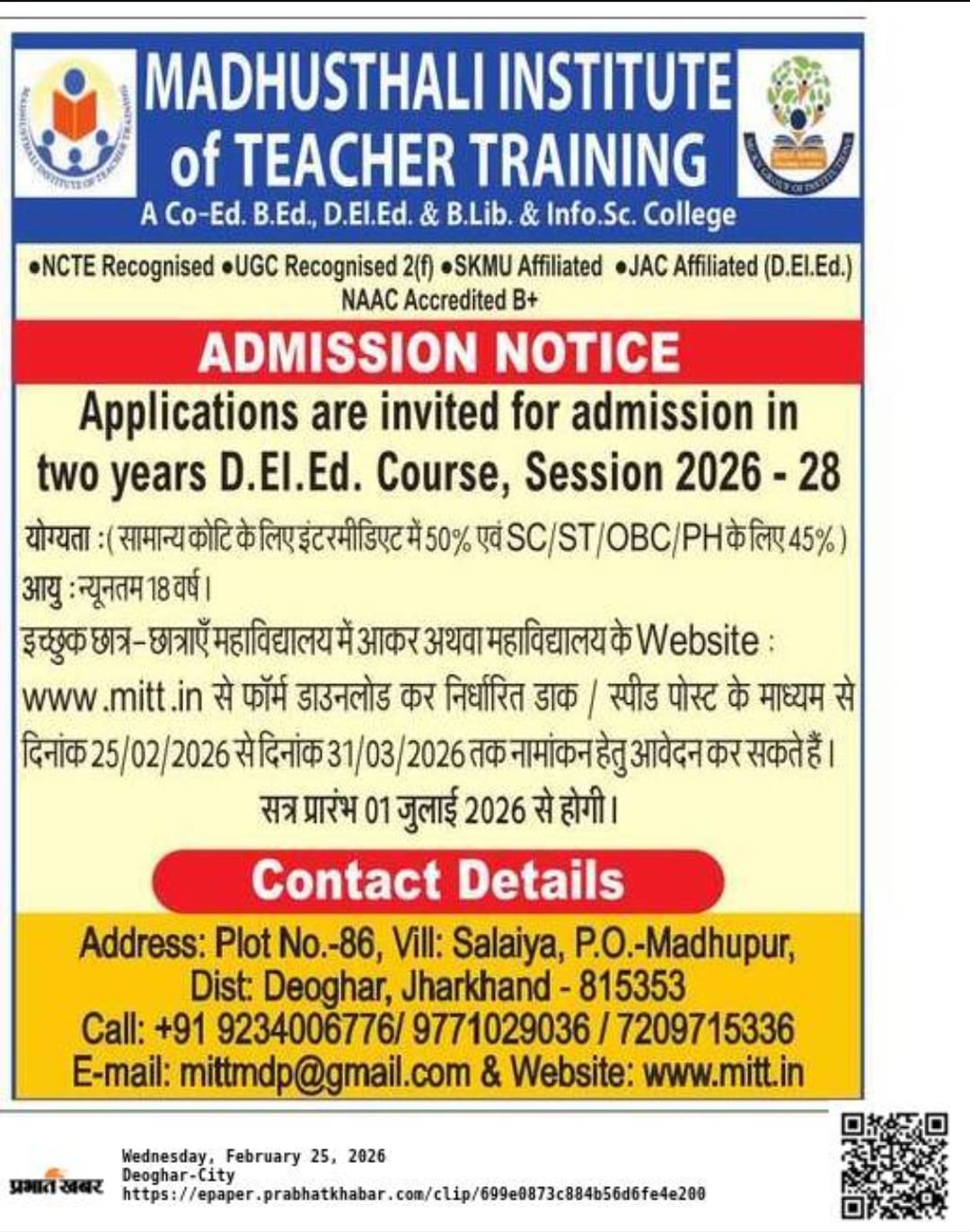 • D.El.Ed. 2025–27 Induction Program
